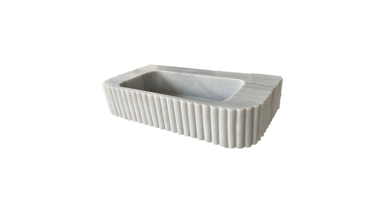 Marmor vask med rundede hjørner og rillet front og sider til vægmontage eller fritstående. Produceres med eller uden hanehul.