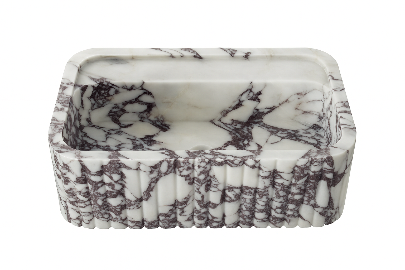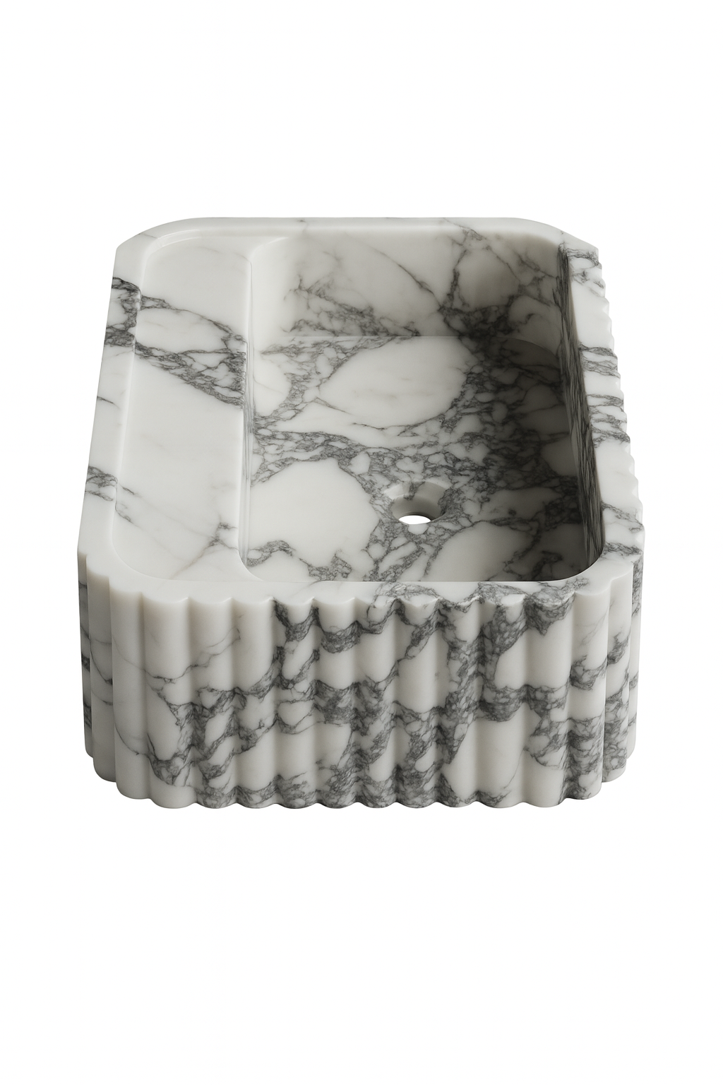 Marmor vask med rillet front og sider til vægmontage. Uden hanehul.